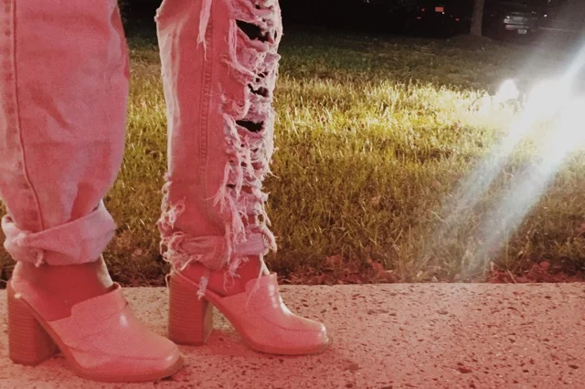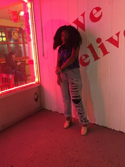 Wearing my DIY distressed denim pants I made in 2013, my senior year of high school. I remember when I made these denim pants. I was a little heavier than I am now. They barely fit, but I forced them to fit because they were cute. I could not breathe. Then when I started losing weight, these pants made an appearance every week. Obsessed was an under statement. Now I'm in desperate need for noir distressed denim. It's time to retire these bad boys.