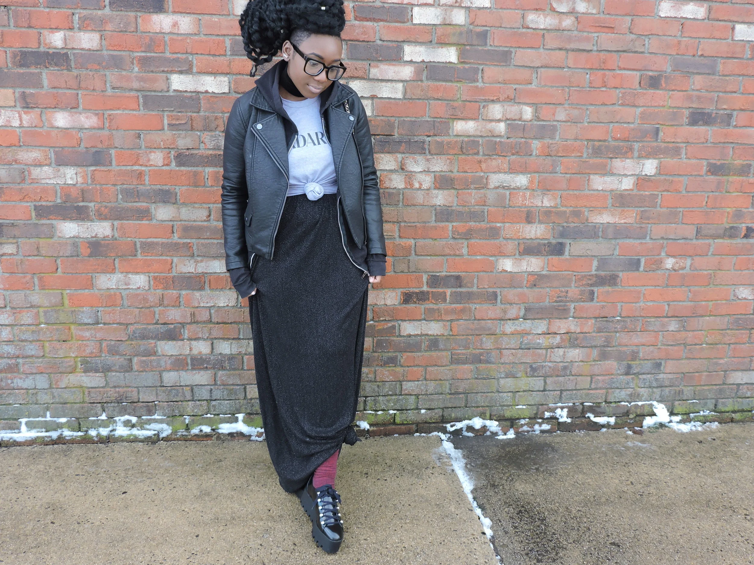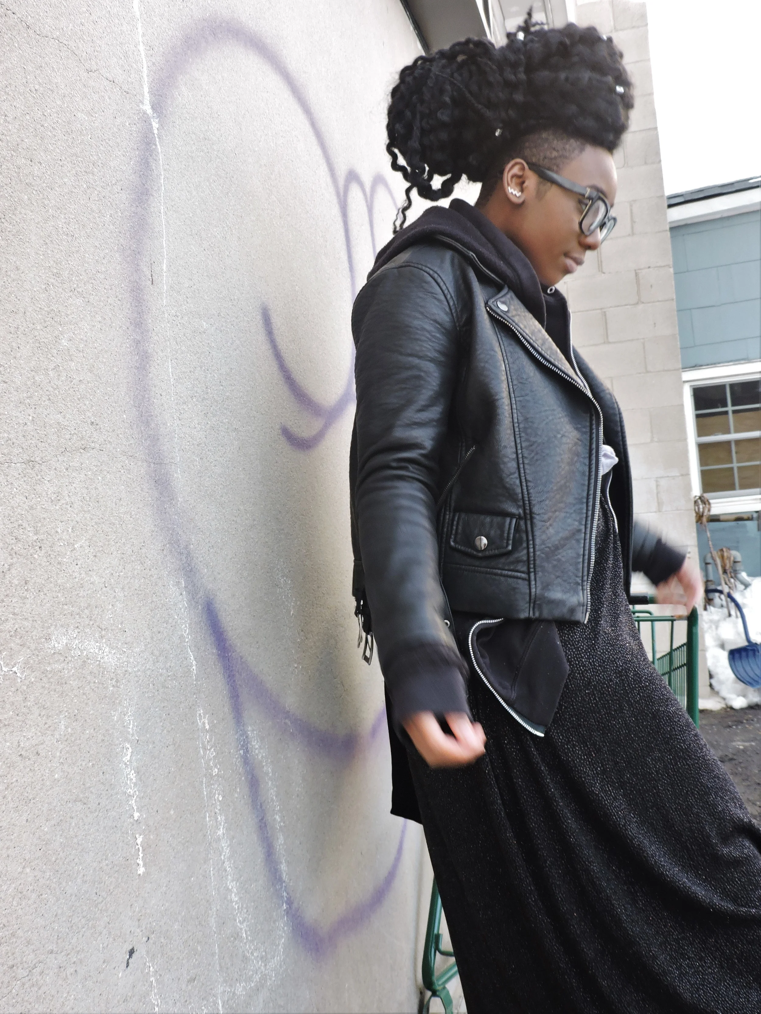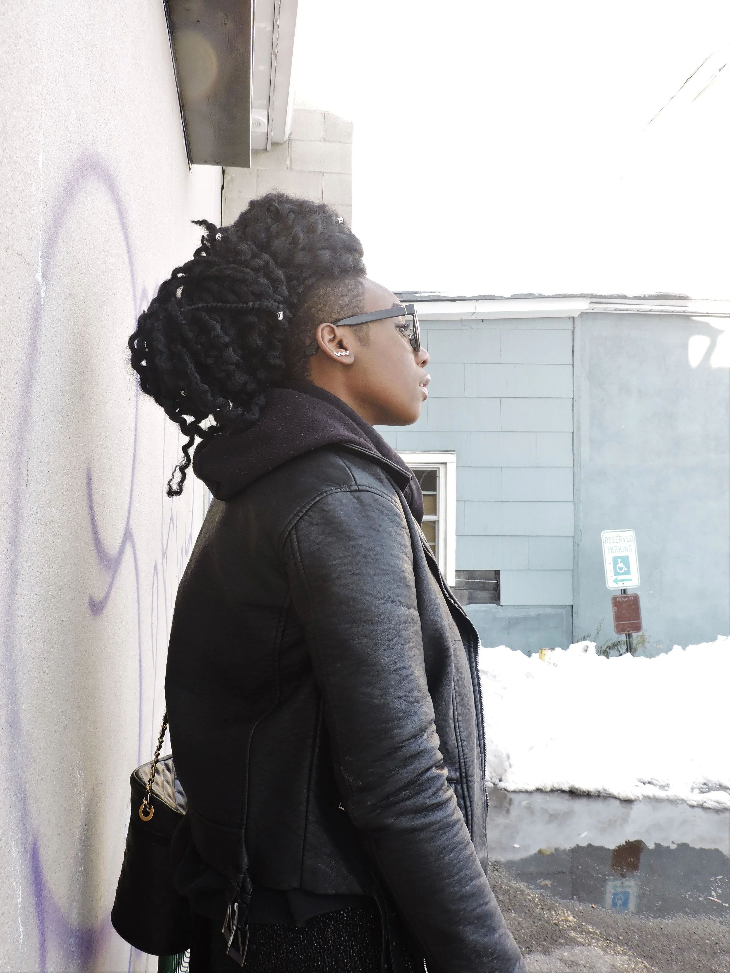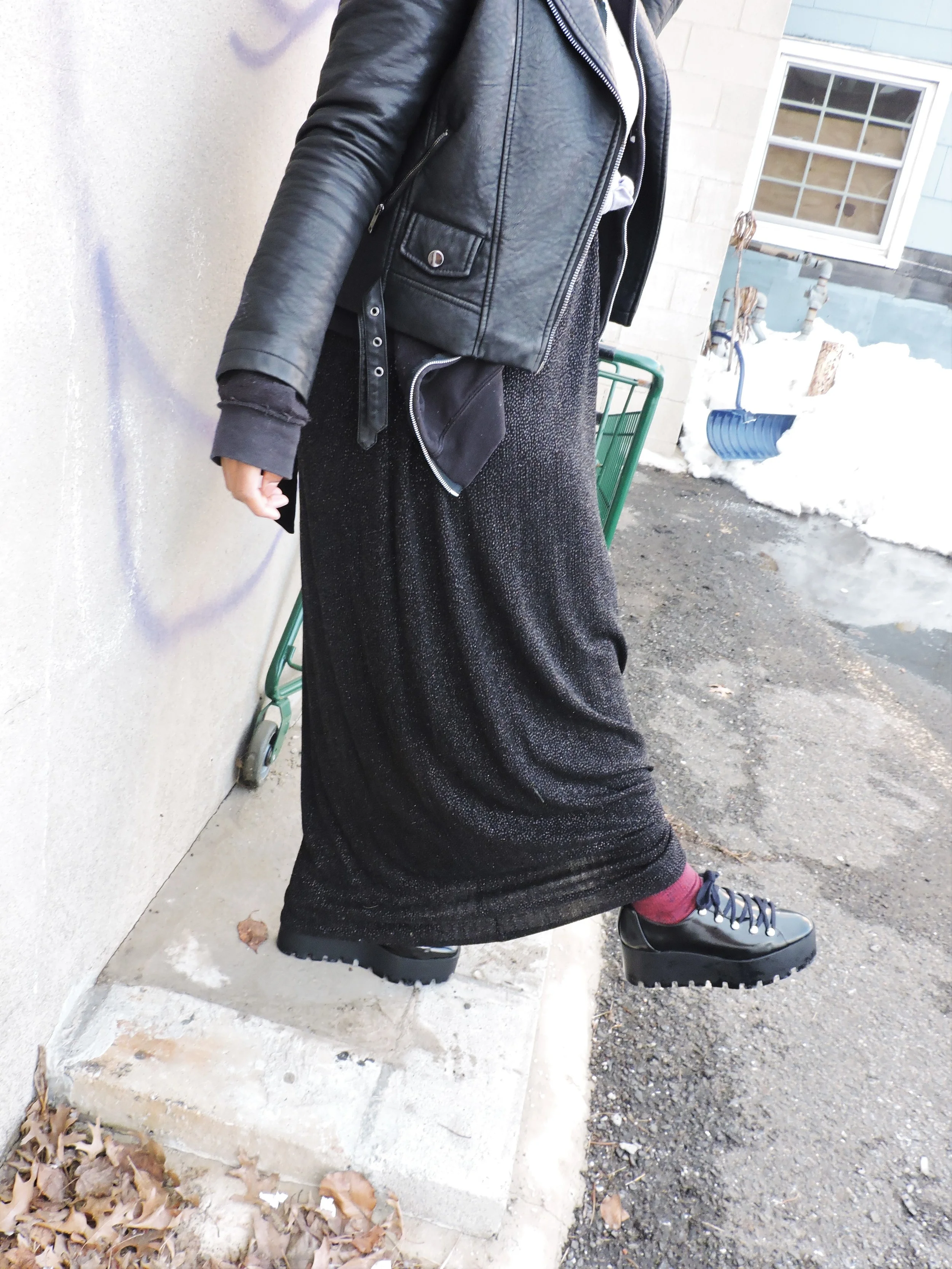 Day 2 of blizzard madness. The roads were pretty much cleared in my town, which was exciting. I was able to hit Main Street and capture some shots of a look that I've been waiting to do. In my opinion this given look was appropriate for the day. Let's just say that these shoes I'm wearing down below saved me in the snow. The height and the heavy duty grips works wonders when stepping into inches of snow. Ice on the other hand is not our friend.