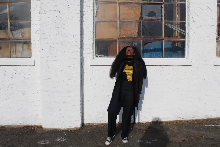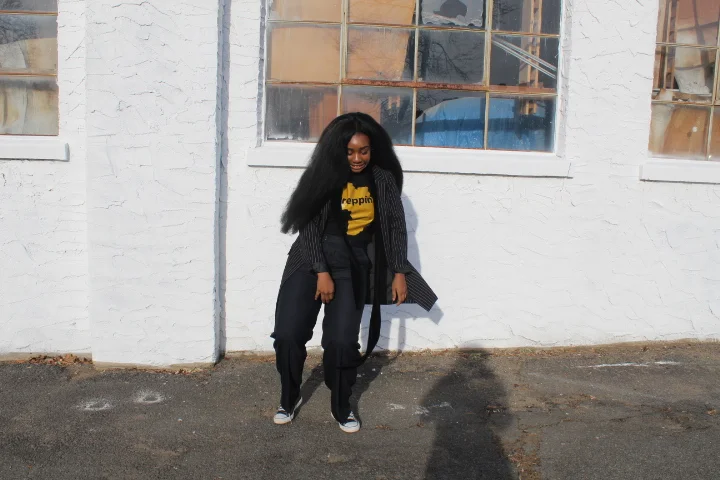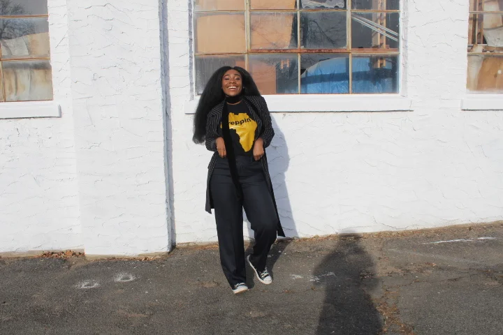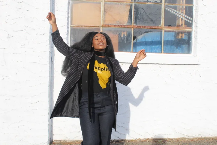 I've Styled this t-shirt several ways and had fun doing so. I've come to the realization that I cannot be serious with my shoots for the blog because when I style myself, I feel vibely. Baby, baby I got the feeling. Hahaha I can feel it in my bones. I guess you can say this look requires me to be in a bad ass girl band. Rocking out on an electric guitar with pick in my mouth. Better yet I'll lead the band with my killer beats on the percussion set. You know what playing the drums is an ultimate life goal for me. I find those who know how to play an instrument or sing to be very intriguing in their talents. Skills will take someone a long way. Check out my skillfully made attire featuring the FREEDOM54 #Reppin' African graphic tee.