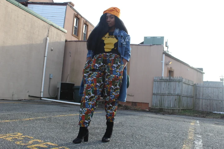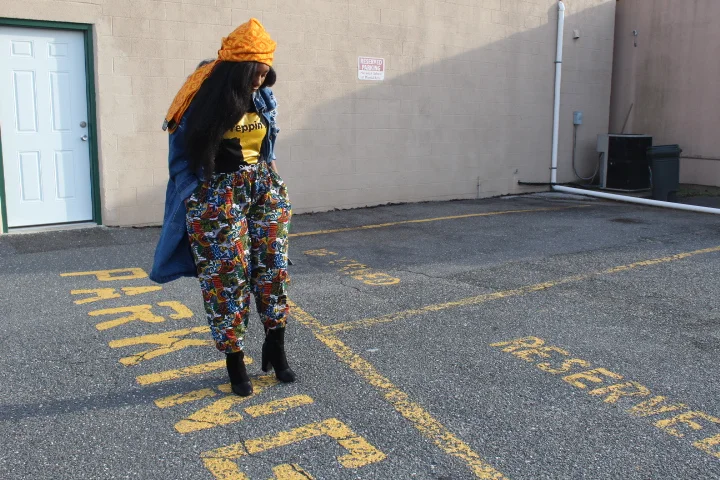 Look two of this style series gives us a it more color. I barely play with color, however my garment rack in which I have organized in my room, now consists of more and more colors. The look below is not something I would wear often. Yet for a chill day out I would grab a comfortable trouser. To add extra flavor a printed pant can do no wrong if styled properly. The bottoms I am sporting below, is one half of a coordinate set. This African printed pant was thrifted at the local Goodwill. Yes when I thrift I shop as if they won't see me for the next couple months. I was astonished to see an ankara set waiting for me to grab it in Goodwill. Out of all places, Goodwill never fails me.