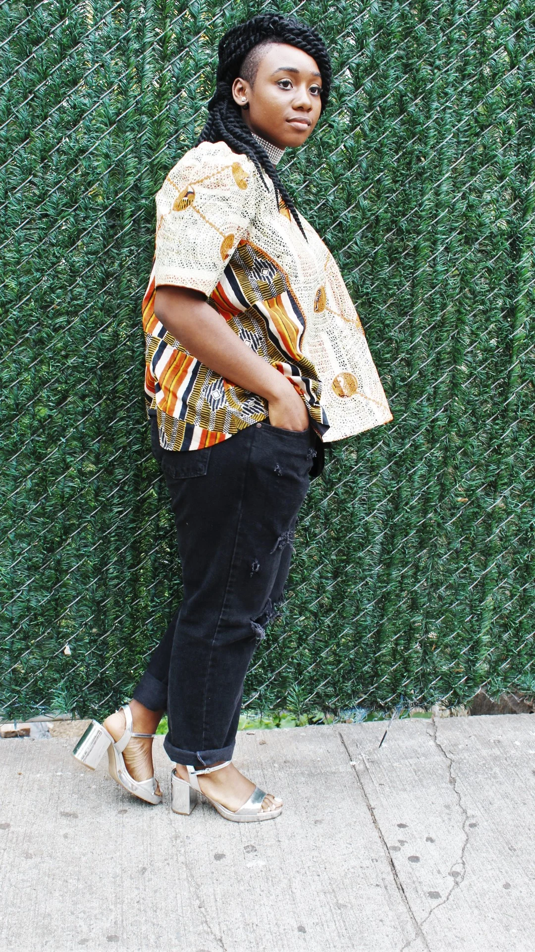 Mixing and matching various elements that may or may not have a cultural influence is how I would describe my style. Taking bits and pieces from life experiences and interests and incorporating it into my daily dress is StylistaInMind. Below I borrowed my mothers African Blouse that has a matching bottom and turned it into something StylistaInMind would wear. Boyfriend jeans are the simplest way to turn a "basic" outfit into something chic and edgy at the same time. If there is no bit of edge to it than it is not a StylistaInMind look. I mix pieces up not to throw others off but to show versatility through garments. Many would say oh that's "meshy" (messy). But hence the title A Cultural Mesh, it's done purposefully. Not everything needs to match. Build a story with your look. Make it your own.