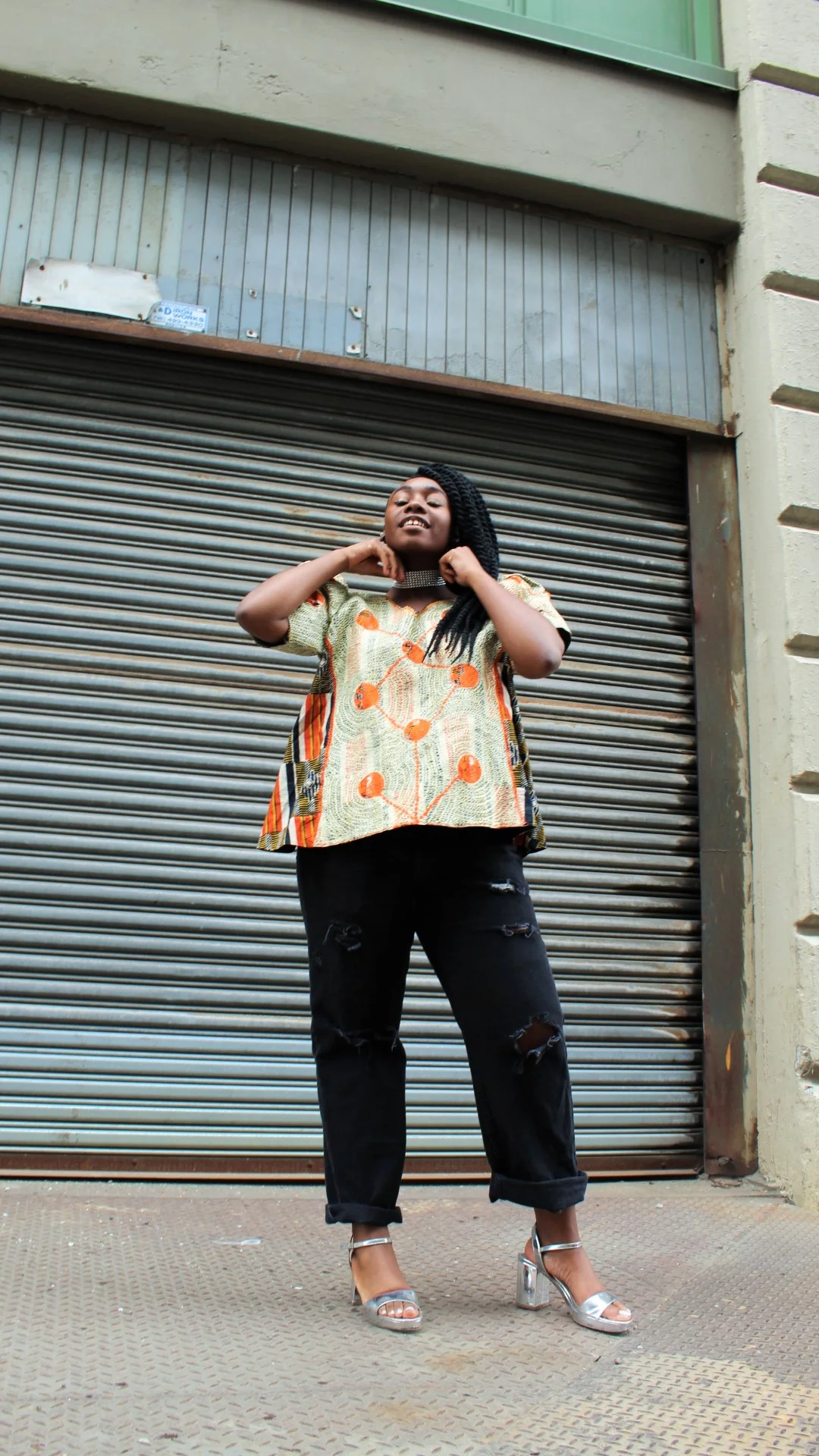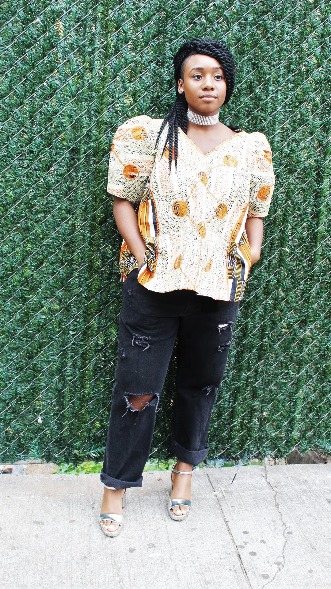 Back to the outfit, I did without the kente trousers grabbed my DIY distressed denim that I thrifted and paired them with my favorite Zara Heels that were officially destroyed after this day. Walking through the streets of NYC not the best choice.